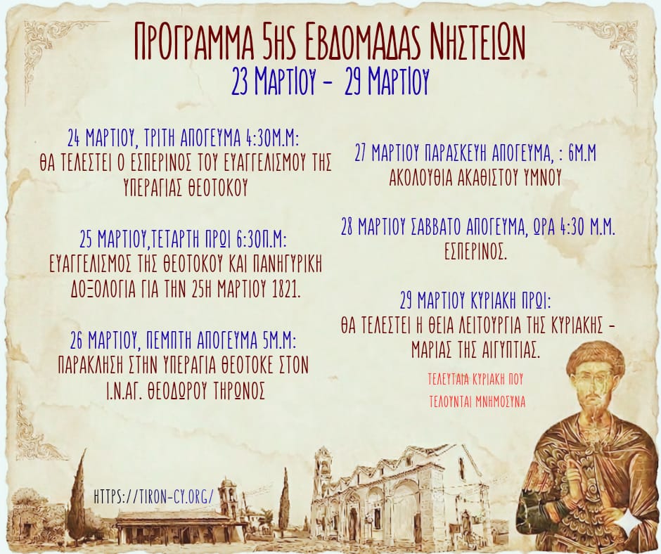 Πρόγραμμα 5ης Εβδομάδας των Νηστειών
