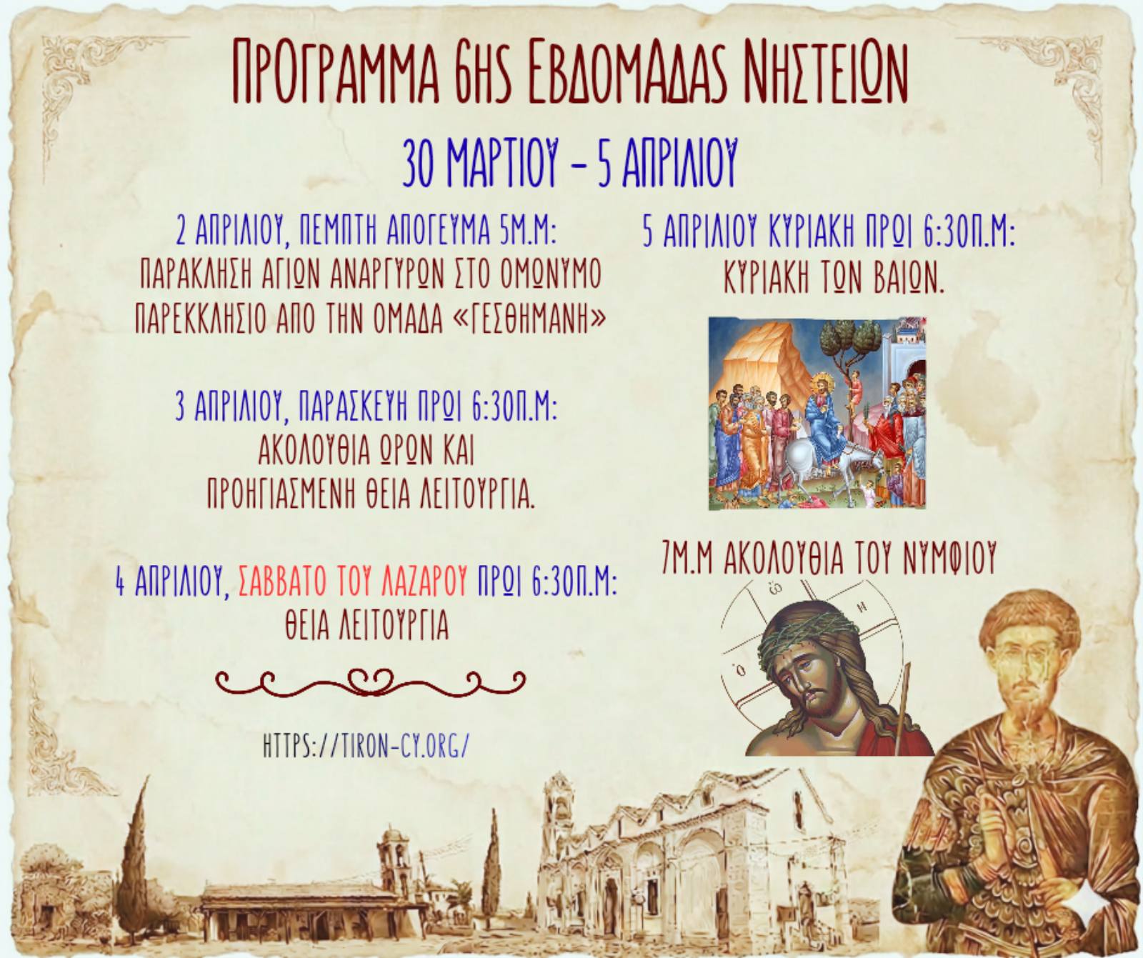 Πρόγραμμα 6ης Εβδομάδας των Νηστειών