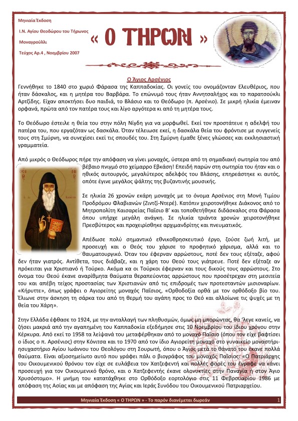 Εύχομαι με τις ευλογίες του Αγίου Θεοδώρου η έναρξη της κυκλοφορίας του φυλλαδίου αυτού να αποτελέσει την αρχή της πνευματικής μας επικοινωνίας. Στόχος μας, είναι να ενωθούμε