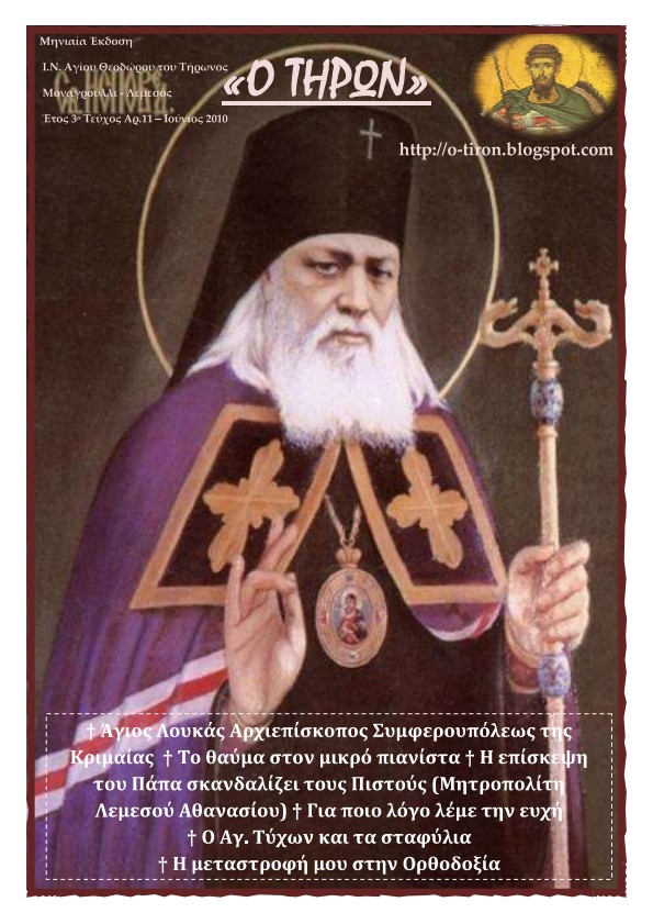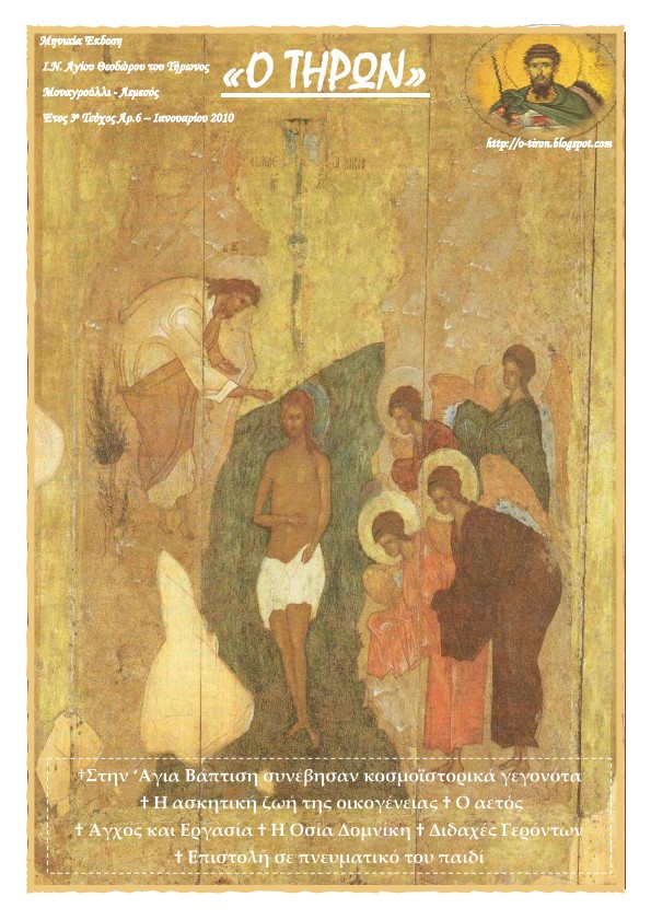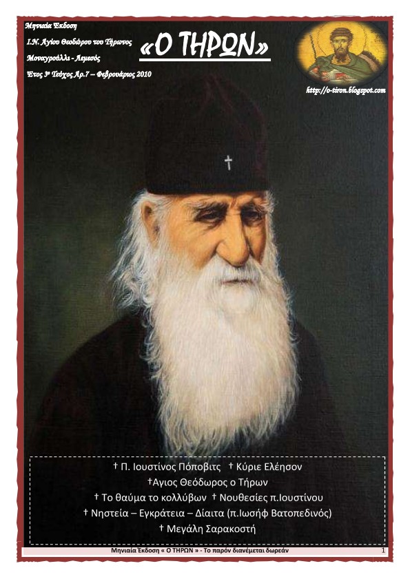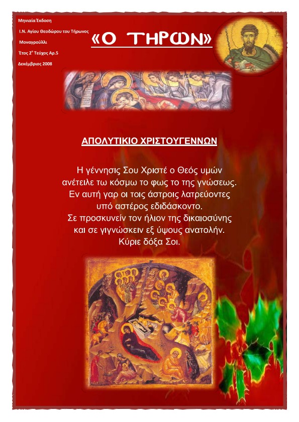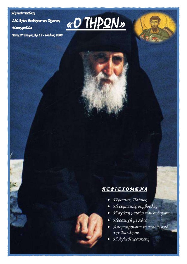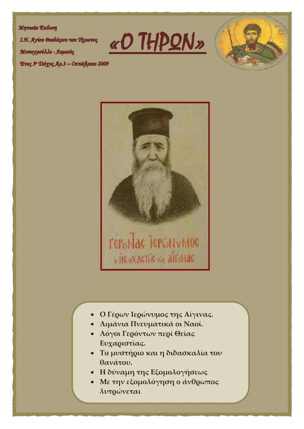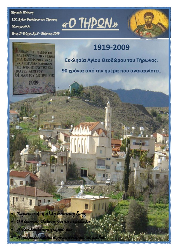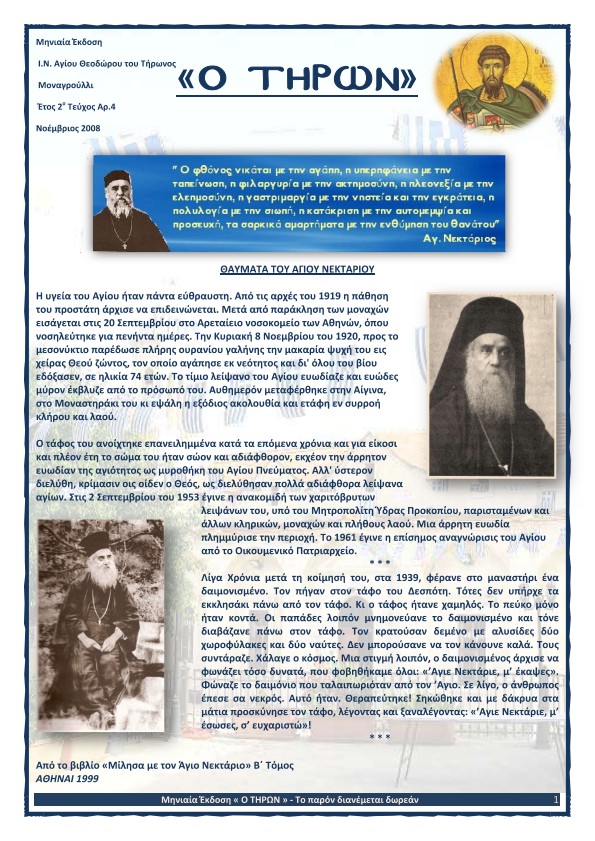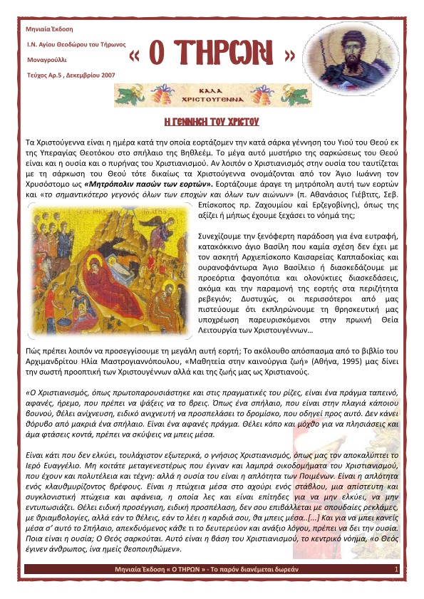 Εύχομαι με τις ευλογίες του Αγίου Θεοδώρου η έναρξη της κυκλοφορίας του φυλλαδίου αυτού να αποτελέσει την αρχή της πνευματικής μας επικοινωνίας. Στόχος μας, είναι να ενωθούμε